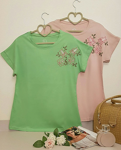 تیشرت زنانه آستین افتاده گلدوزی از سایز 38 تا 44