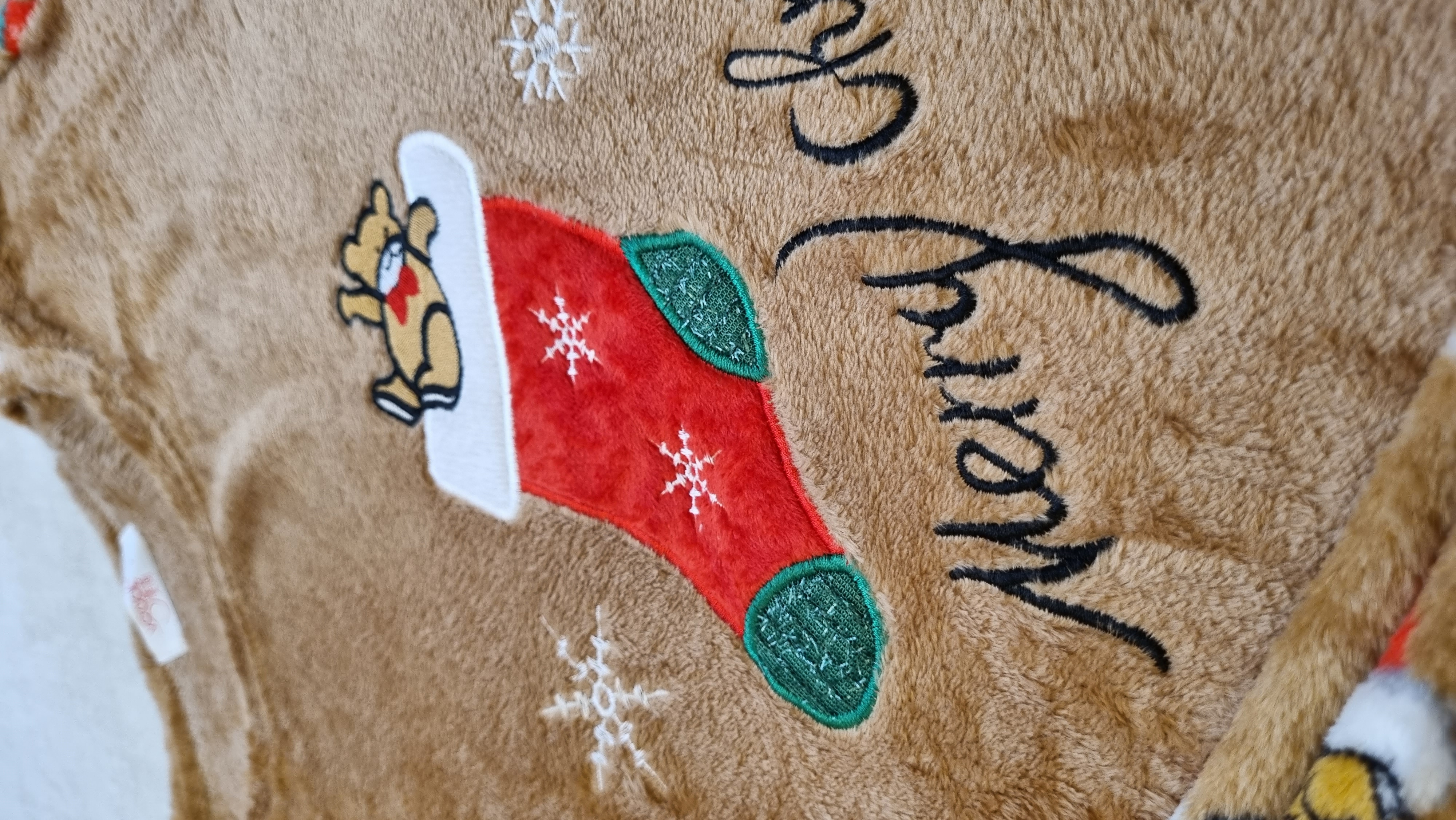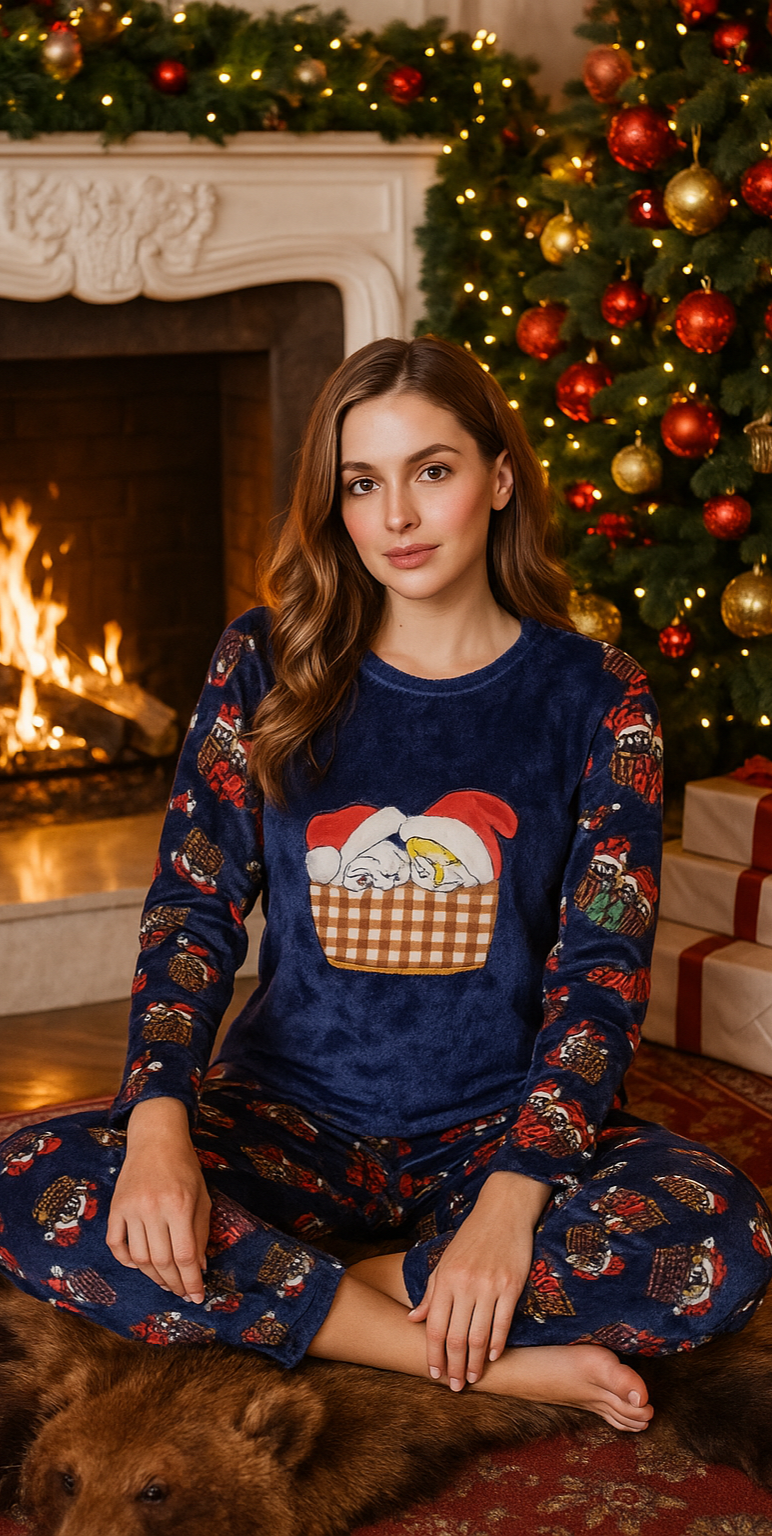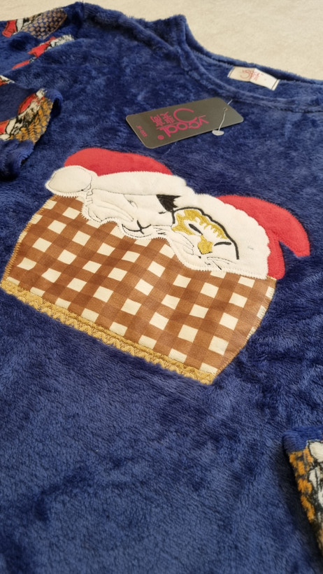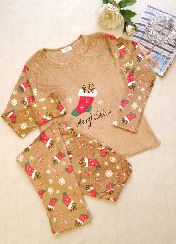 ست بلوز و شلوار تدی با جنس حولهای و طراحی کریسمسی. فری سایز از ۳۶ تا ۴۴ با مشخصات دقیق سایز.