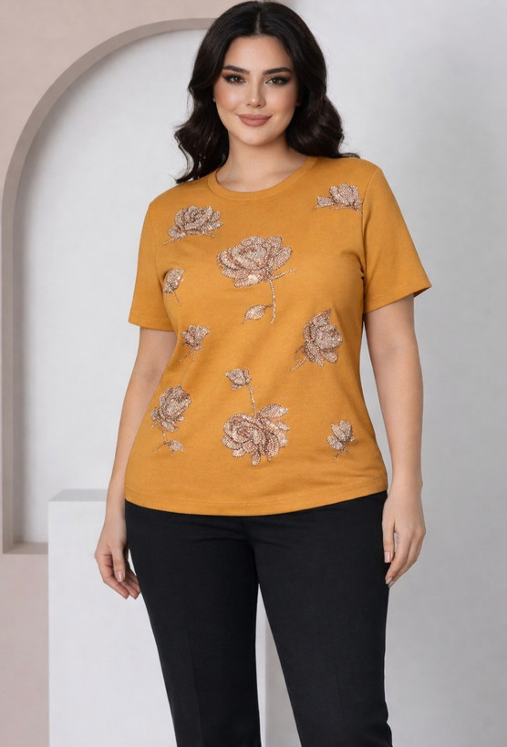 ✅️سایز: سایز L (خردلی) قد بلوز ۶۸ دور سینه ۸۸ (۴_۵ سانت کشسانی) قد آستین ۱۶