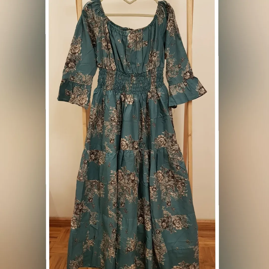 پیراهن درباری جنس نخ کتان قسمت زیر دامن آستردار هست. دارای ۳ طرح. مشخصات سایز: قد پیراهن ۱۲۰ تا ۱۴۰ متغییر، دور سینه ۱۰۰ الی ۱۰۴، قسمت کش دوزی کار ۸۰ با کشسانی ۱۰۲، دور بازو ۴۰، قد آستین از کنار یقه ۴۸.
